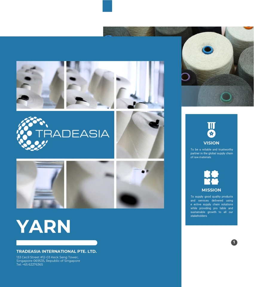 Discover our wide range of quality yarns tailored for your business needs. Get detailed product specifications, packing options, and more by downloading our brochure today!
